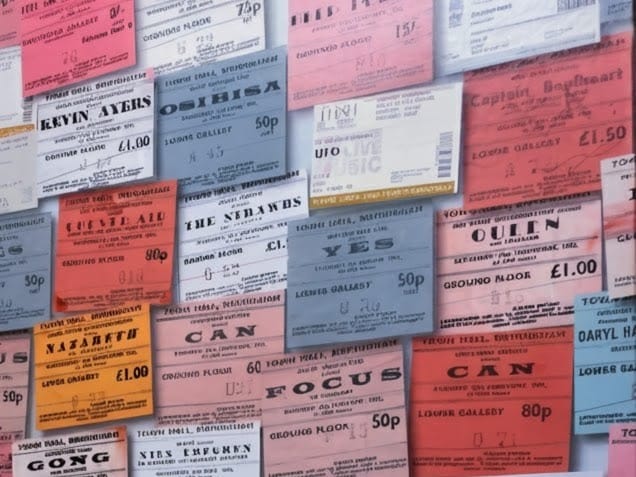 Highlights include concert programmes and tickets from landmark performances, including Black Sabbath’s debut at Town Hall in April 1970 and The Beatles’ first performance in 1963.