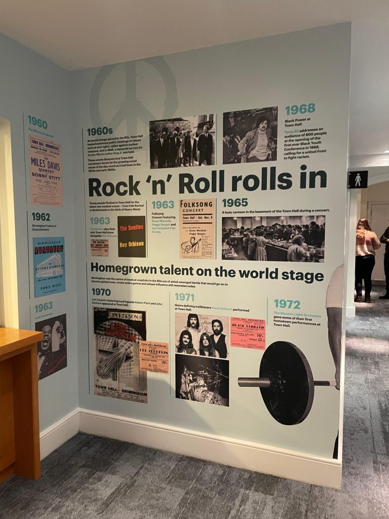 Walls at Birmingham Town Hall now chart its music and social history as part of the Amplify project with Birmingham Music Archive